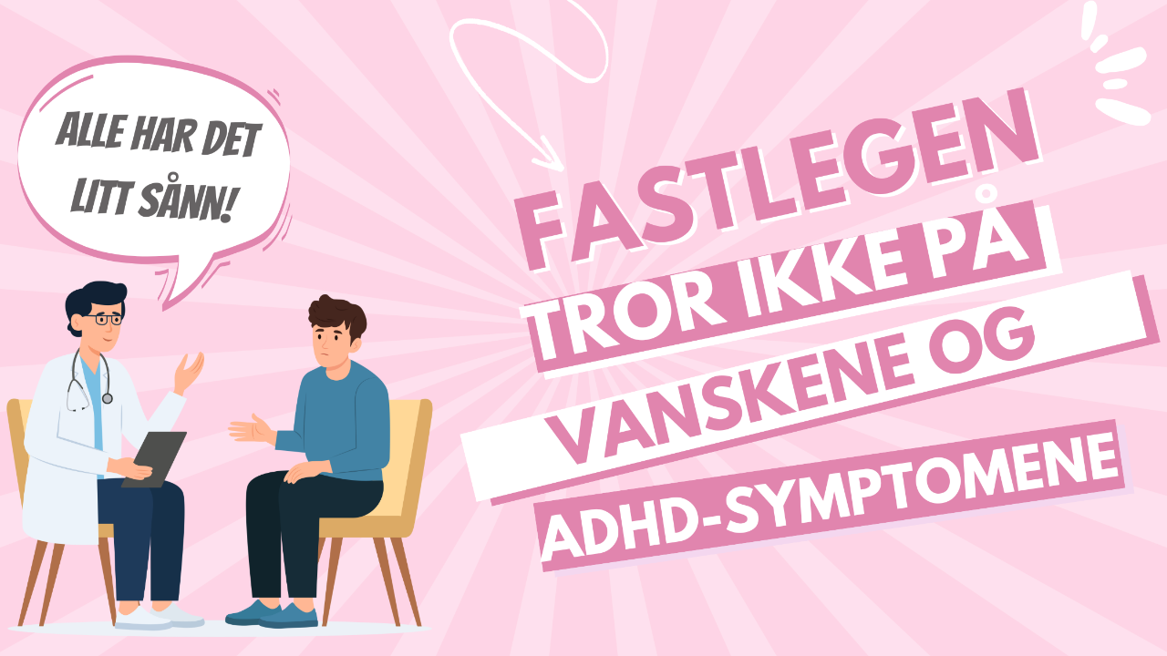 Har du opplevd å sitte på legekontoret med hjertet i halsen, prøvd å sette ord på kaoset du har slitt med hele livet – bare for å møte et hevet øyenbryn og et "alle sliter litt innimellom"? Da gikk du ut derfra med en ordentlig klump i magen og en følelse av at du ikke ble tatt på alvor.